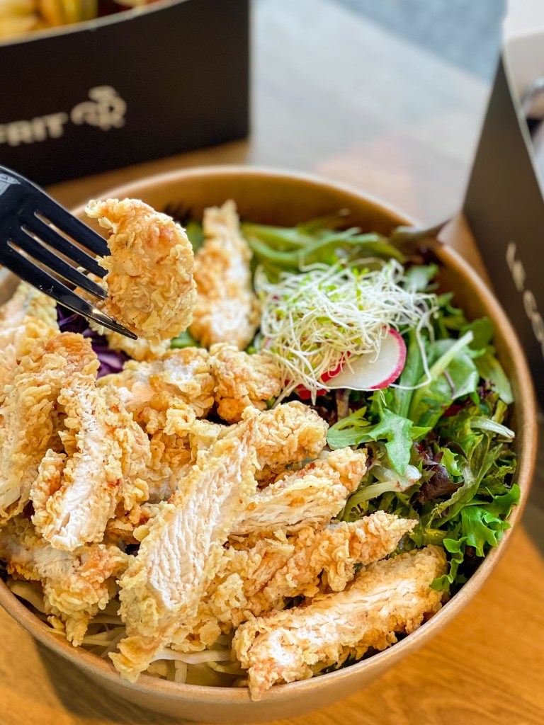 The best way to make your fried chicken a little less guilty 🤫 Here, they take their original chicken and add it to a salad bowl with a generous amount of house-made Yuzu dressing. 🍋 I was super impressed by how crispy this chicken was, even when mixed into the salad. The dressing was a hit, sweet and a little sour to contrast that crunchy chicken! 👌🏼